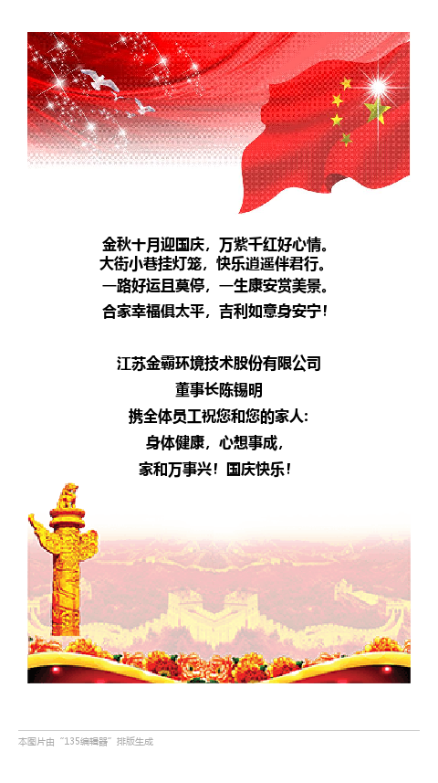 江苏金霸环境技术股份有限公司祝您国庆节快乐!